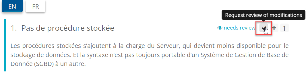 For each updated section, click on the 'Need review' button in order to request a review.