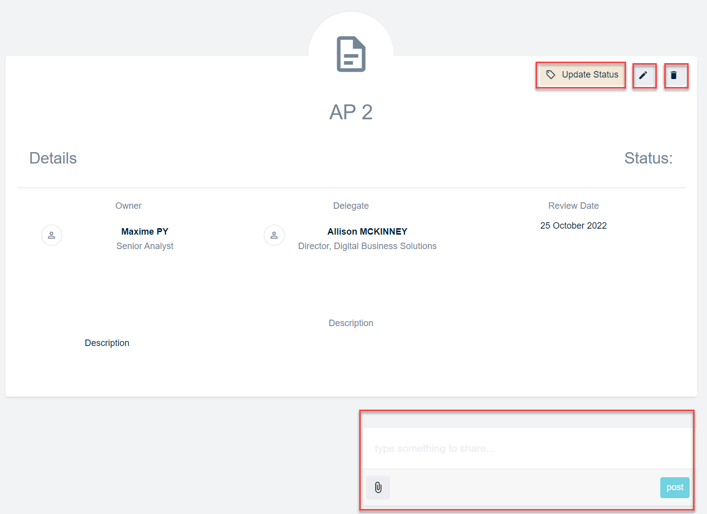 Click on the derogation action plan you want to edit in order to open the derogation action plan detailed view to: