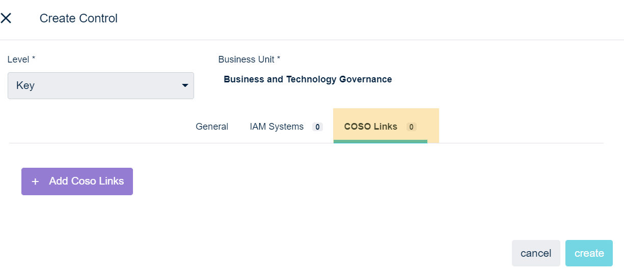 The COSO Links tab allows you to add COSO links by clicking on the 'add COSO Links' button.