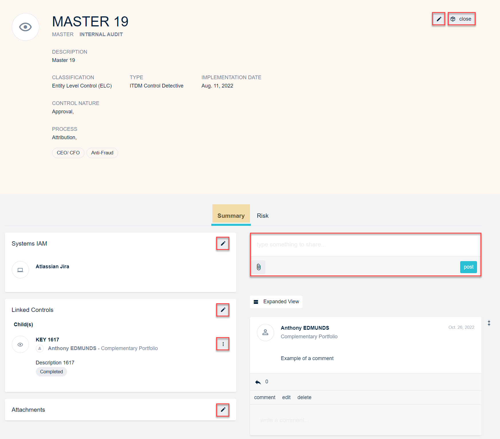 The header incudes the main information about the control. You can click the 'edit' button to update the control information.
